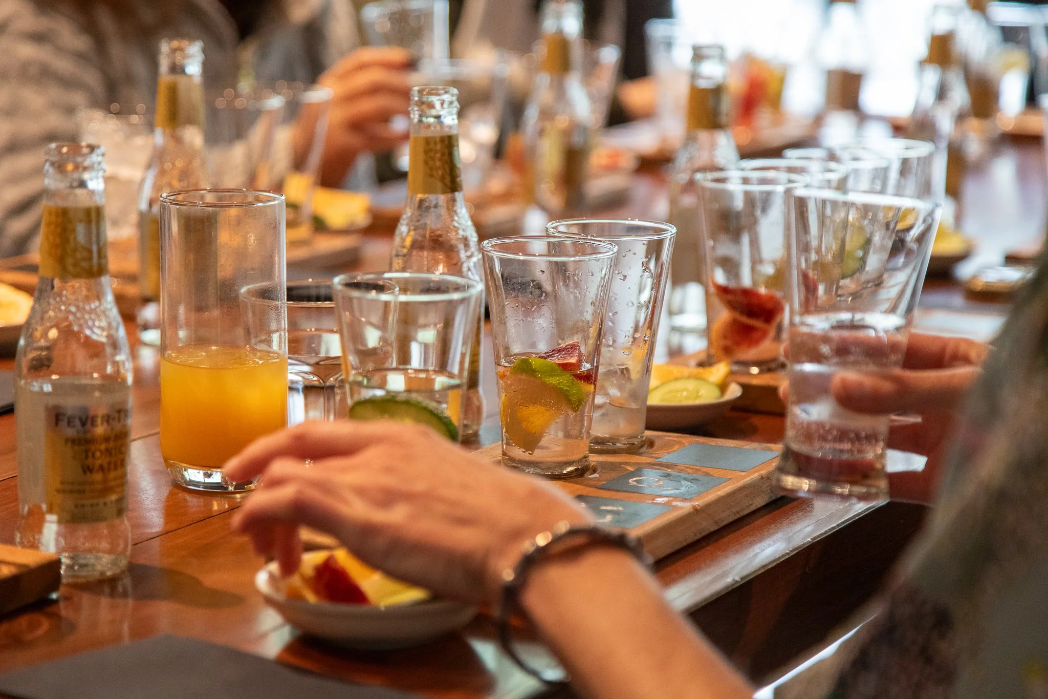 Snacks and a gin tasting board are provided throughout the session